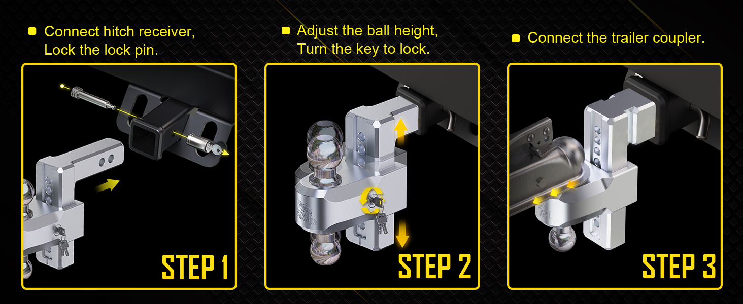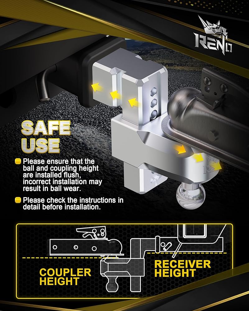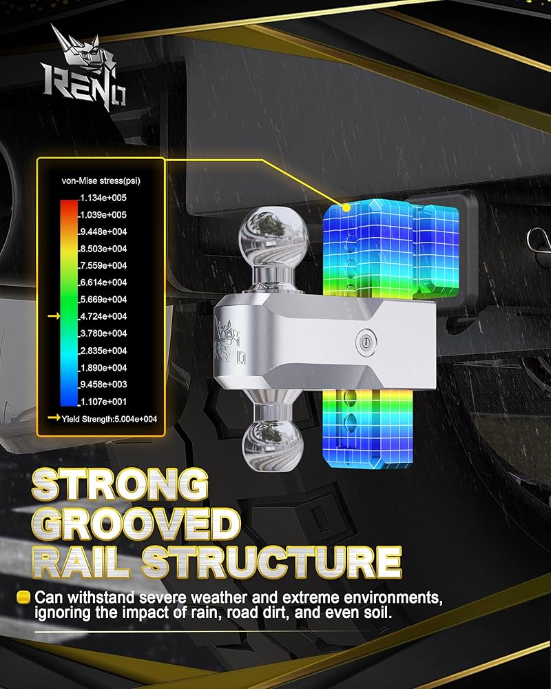 [Precision CNC Cutting, Accurate Adjustment]: Utilizing zero-error CNC cutting technology, the dual-slot rail design enables flexible 6-inch rise/drop adjustment. Adjustments can be made in 1-inch increments, allowing you to easily set the trailer ball to the ideal height.