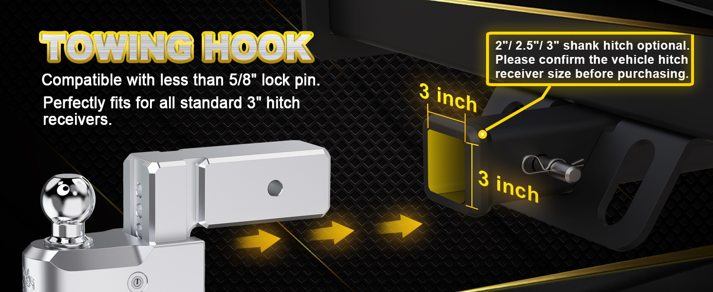 Note: This product is only compatible with 3-inch hitch receivers. There is also a 2-inch/2.5-inch option. Please confirm the compatible interface size of the vehicle before purchasing. If there are quality/installation issues, we will help.
