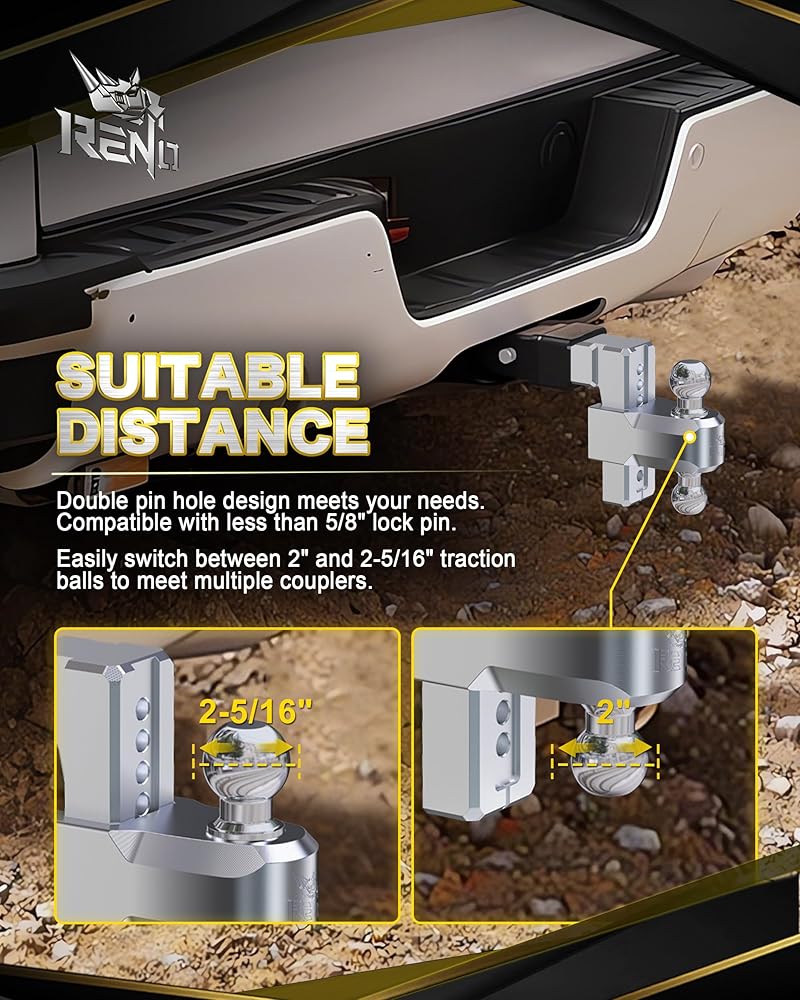 [Powerful Towing Capacity, Wide Compatibility]: Integrated chrome ball head with a maximum towing capacity of up to 21,000 lbs. Quickly switch between 2-inch and 2-5/16-inch ball sizes to fit various trailer couplers. Used for extremely heavy duty trucks.