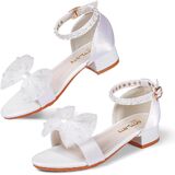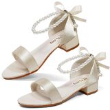 【Eyes Catching Look】- Fashion dressy shoes decorated with elaglant pearls and lovely bowknots get both grace and cuteness,which made of satin material. Perfect for making your little girl the center of attention!