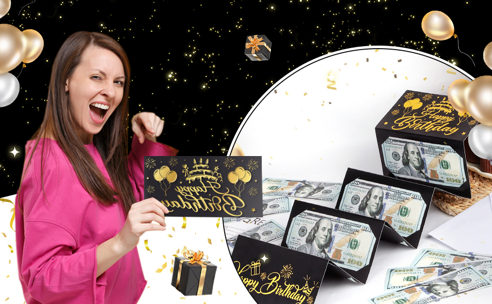 Wide applications: The money box for cash gift birthday are beautiful and versatile, and offer a unique and interactive way to present a cash gift. The birthday party supplies are souvenir and birthday gifts for men's birthdays, women's birthdays, 16th,18th, 21st, 30th, 80th, and 90th birthday parties, and any age