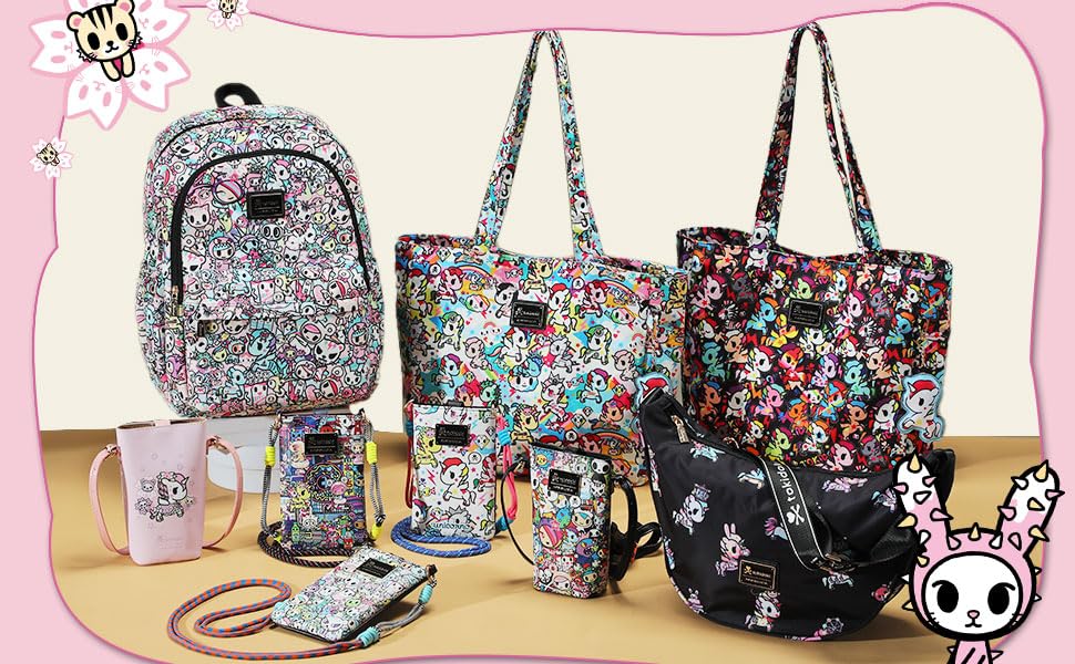 【Tokidoki Crossbody Bag】 This tokidoki unicorno type crossbody bag is very cute and fashionable, full of printed TOKIDOKI unicorno, large capacity, suitable for a variety of occasions!