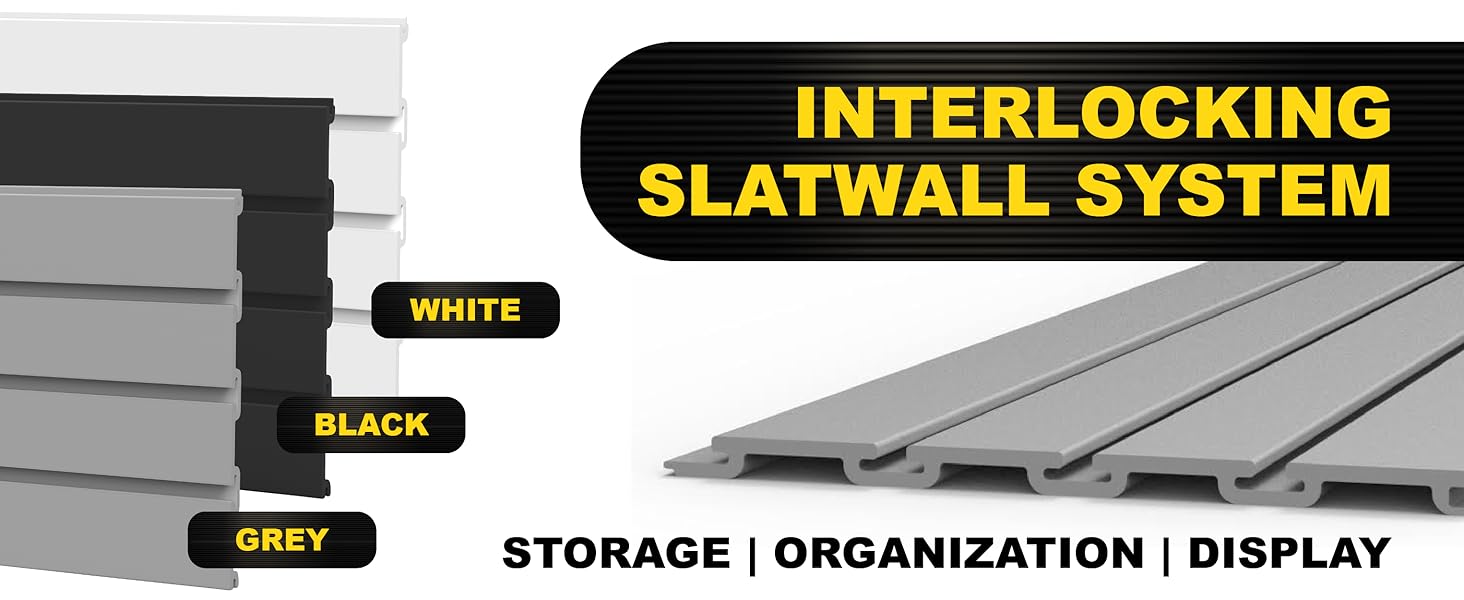 MODULAR 4×8 INTERLOCKING PANELS FOR CUSTOM LAYOUTS: Create your ideal garage slat wall storage system with modular 4x8 PVC wall panels that interlock seamlessly. Use as full pvc wall panels 4x8, individual sections, or combined wall slats to design a fully flexible garage organization wall or wall tool organizer system.