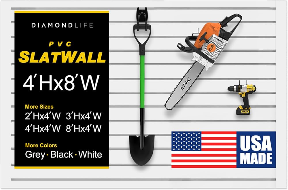 U.S. MADE SLAT WALL PANELS FOR PROFESSIONAL GARAGE STORAGE: Our slat wall panels are proudly manufactured in the USA and engineered for heavy daily use and superior load capacity - ideal for garage wall organization systems, workshops, and commercial storage. Built to outperform imported options, our U.S.-made slatted wall panels deliver long-lasting strength you can rely on.
