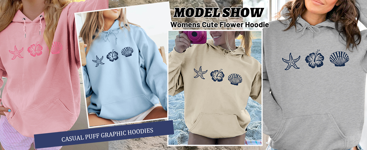 Unique Design: The Puff Print Sweatshirt for Women Girl Is Design with Cute Flowers And Shells Printed And Long Sleeve. The Drawstring Flower Hoodie And Trendy Graphic Design Create A Cool Streetwear Look, Stay Warm And Fashion with This Pink Pullover Tops, Giving It A Fun Youthful Vibe. Its Casual Yet Fashionable Design Will Have You Wrapped in Coziness All Day Long