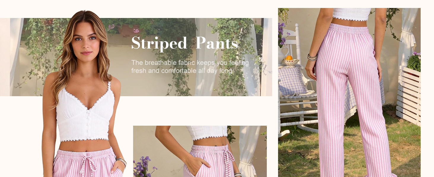 Soft & Stylish Fabric: Crafted from premium cotton, our women's striped pants are soft, lightweight, and skin-friendly. These cotton lounge pants are breathable and easy to care for—keeping you fresh and comfortable all day, whether relaxing at home or out and about