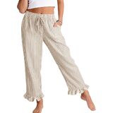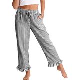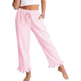 Thoughtful Design & Fit: Elevate your comfort with our women's cotton pajama pants. Featuring a timeless striped print, straight wide legs, and a cute ruffled hem, these cute pants combine style and function. With two side pockets and an elastic drawstring waist, they offer a customizable, relaxed fit for all-day ease and freedom