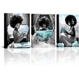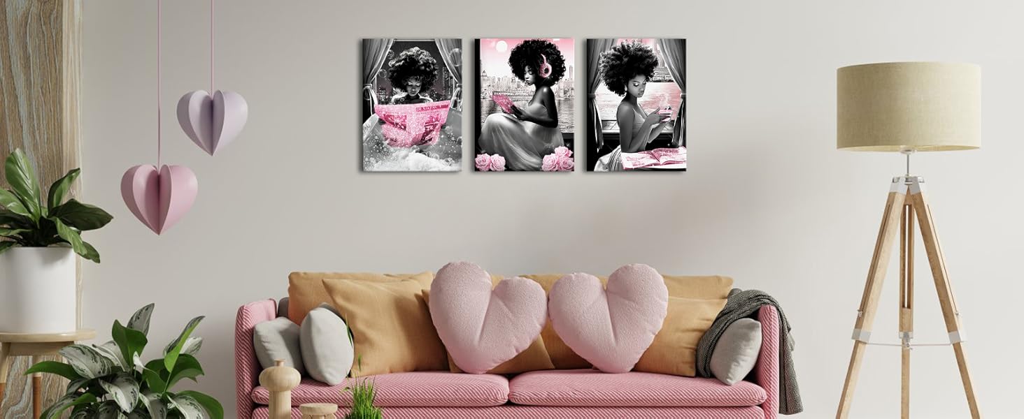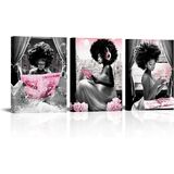Apicoture فتاة سوداء جدار الفن الأسود والوردي جدار الفن المرأة الأمريكية الأفريقية صورة ملهمة ديكور الحائط للحمام (الوردي)