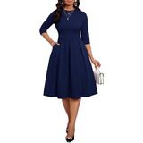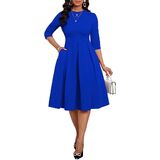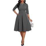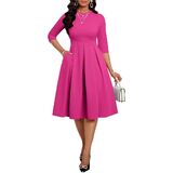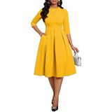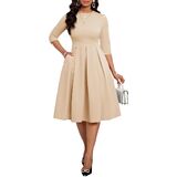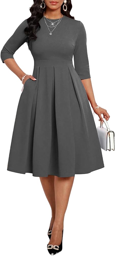 ❤ Stylish: Slim casual Midi dresses for women, Mid Sleeves, Midi length dress, elegant swing pleated hem. High waistband perfect to trim your waist and show your S-shaped body. Rich colors can meet the needs of different occasions.