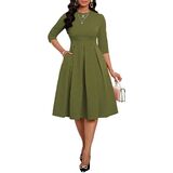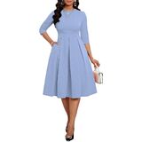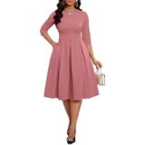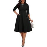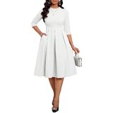❤ Features: Midi dress for women casual/ Church dresses for women/ Classic pure color / A line dress/O-Neck/ Casual swing line dress/ High waist/ Swing Pleated Hem Design, Hugging Your Body Curves Perfectly.