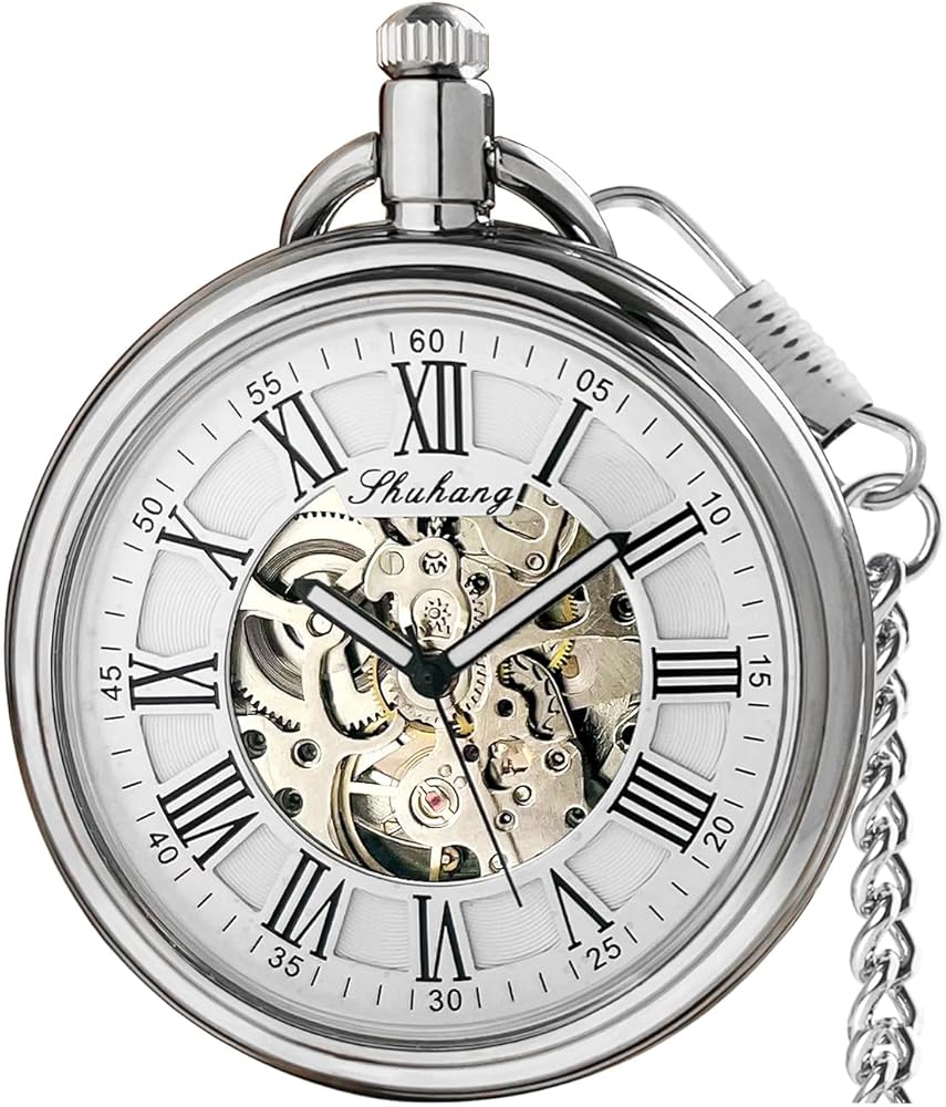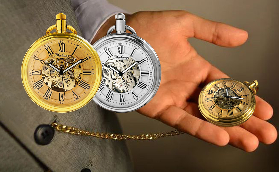 Introducing this Fogitbok vintage open face mechanical pocket watch, a timeless masterpiece that blends classic horology with intricate craftsmanship. This exquisite self wind-up pocket watch features a stunning skeleton dial, revealing the mesmerizing dance of its self winding movement—a true hallmark of authentic automatic watches with no battery. Encased in durable metal with a clear glass crystal and adorned with elegant Roman numerals, it is available in both sophisticated gold and silver finishes. Each piece comes with a 14.5-inch classic pocket watch chain, allowing versatile carry and making it a distinguished pocket watch for men as well as an elegant pocket watch for women. With its antique-inspired design, this timepiece serves as the perfect steampunk watch and a standout steampunk accessory for any ensemble. Whether you're looking for vintage watches for men, vintage watches for women, or a unique vintage gift, this watch delivers both style and substance. It is an exceptional gift for men and gift for women, ideal as a birthday gift for women, anniversary gift for men, wedding gift, retirement gift for woman, dad birthday gift, or gifts for her. Ideal for collectors, enthusiasts, and anyone who appreciates antique pocket watches, this vintage pocket watch is more than a timekeeper—it's a piece of wearable art. Present it as gifts for dad, old man gifts, mens gifts, or a memorable engagement gift. Experience the charm of traditional watchmaking with this stunning pocket watch—a perfect blend of history, engineering, and elegance.