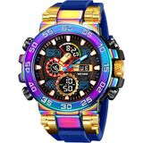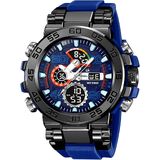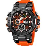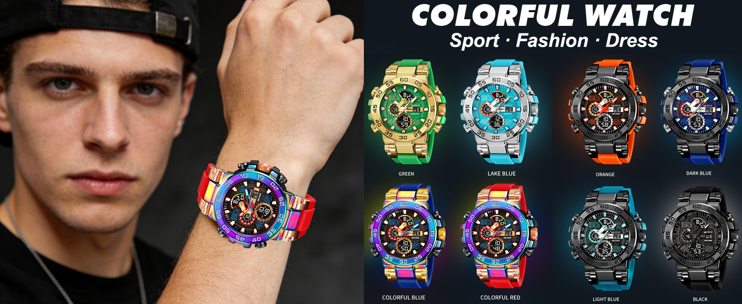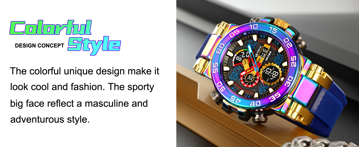 Fashion Big Face Watch: The men chunky watch combine both sporty and fashionable styles, reflecting a masculine and adventurous style. Also has super shock and drop resistance, do not worry about breaking it. Adopt digital and analog two time zones dial, let you read time easier.