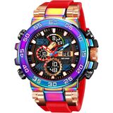 Multifunction Sport Watch: The mens tactical watch come with alarms, stopwatch, dual times, LED luminous, chime, 12/24H time format, week and date. The outdoor colorful watch can meet various needs during outdoor activities and daily, improving the efficiency and quality of life.
