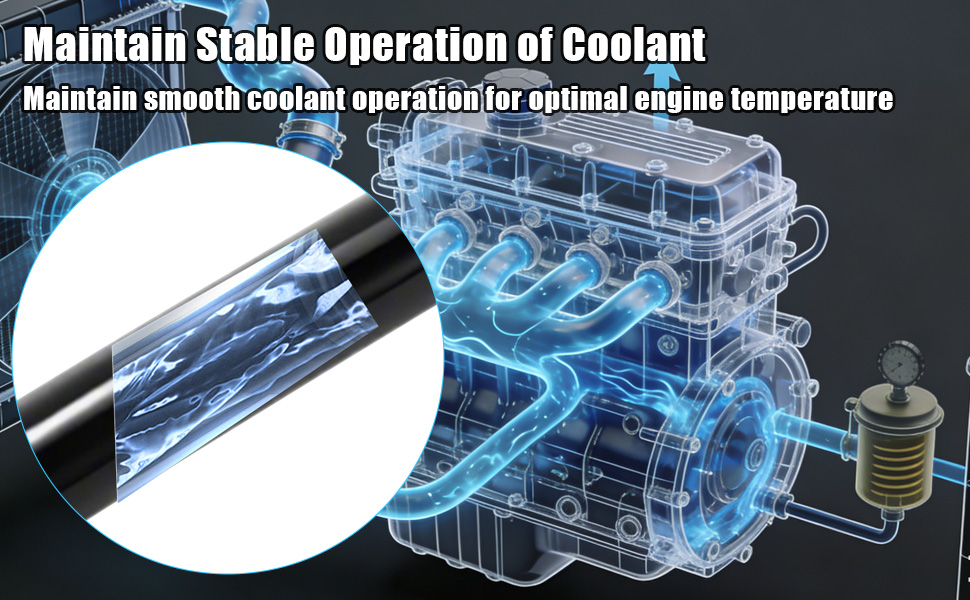 90 Degree Elbow Design: Unique 90 degree elbow effectively prevents the hose from bending during installation, making it suitable for use in confined spaces, ensures smooth coolant flow and improves overall system stability and reliability