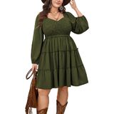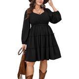 Features: With ruffle tiered design and flattering sweetheart neckline, this plus size mini dress will make you look fashionable while keeping you comfortable throughout the day. The tiered swing A-line silhouette of this dress is perfect for accentuating your curves. And babydoll mini dress length adds a flirty and playful touch to your look.