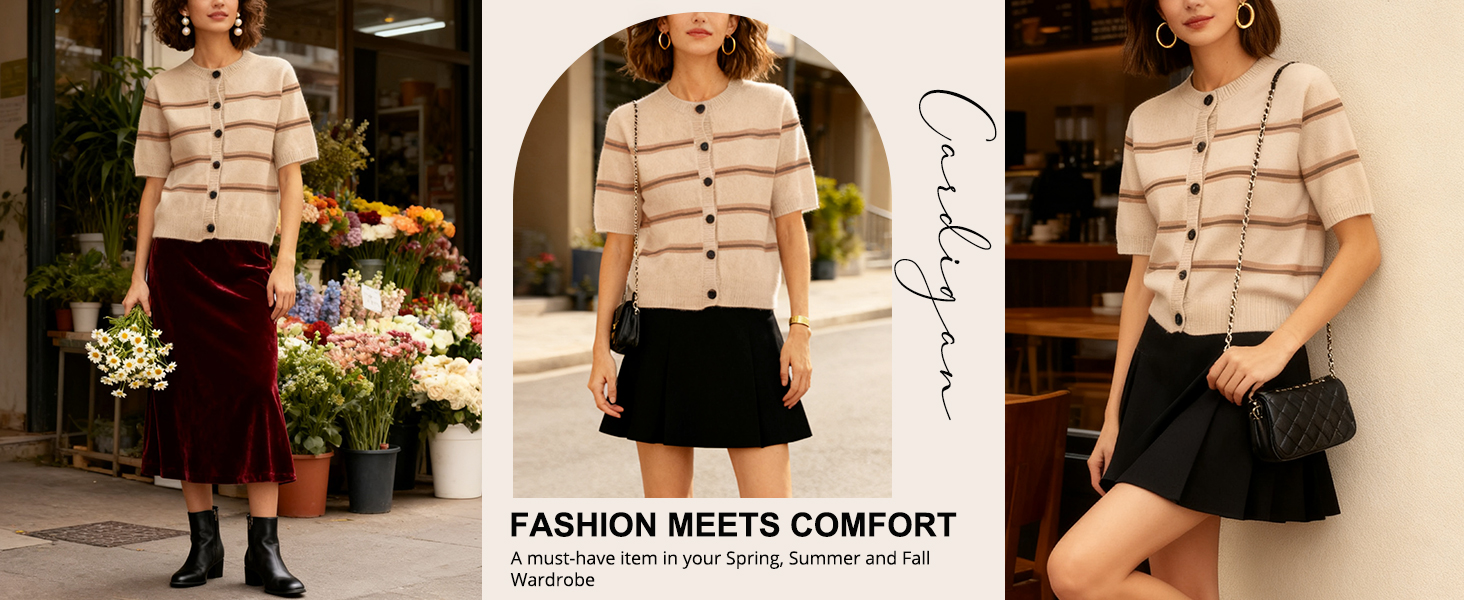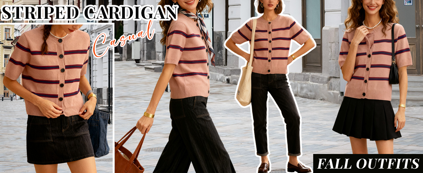 Match: This short sleeve knit cardigan is the perfect piece for a modern and colorful look. Pairing this knitted tops with high waisted jeans or denim shorts or matching it with a skirt or casual pants. The striped crop tops also makes it a great choice for layering under jackets or coat