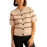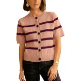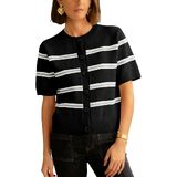 Features: The cropped cardigan features short sleeves, contrast striped and solid color hem, button down and round neck design, classic fit