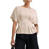 This peplum blouse blends retro-inspired feminine tailoring with modern versatility—ideal for effortless elegance across work, brunch, and casual moments