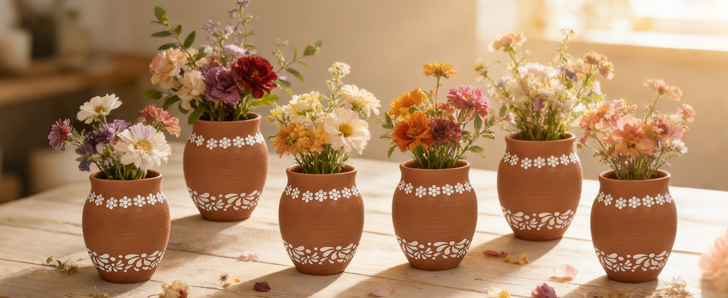 6-Pack Value Set for Versatile Decor: Our 6-piece set offers endless styling possibilities! Arrange them as a cohesive centerpiece for Mexican-themed fiestas, bohemian weddings, or rustic home decor. Use individual cups as mini planters for succulents, cacti, or herbs (easily add drainage holes for live plants). They also shine as candle holders, utensil organizers, or craft containers. With 6 vases, you can decorate multiple spaces or gift them as housewarming presents to friends and family