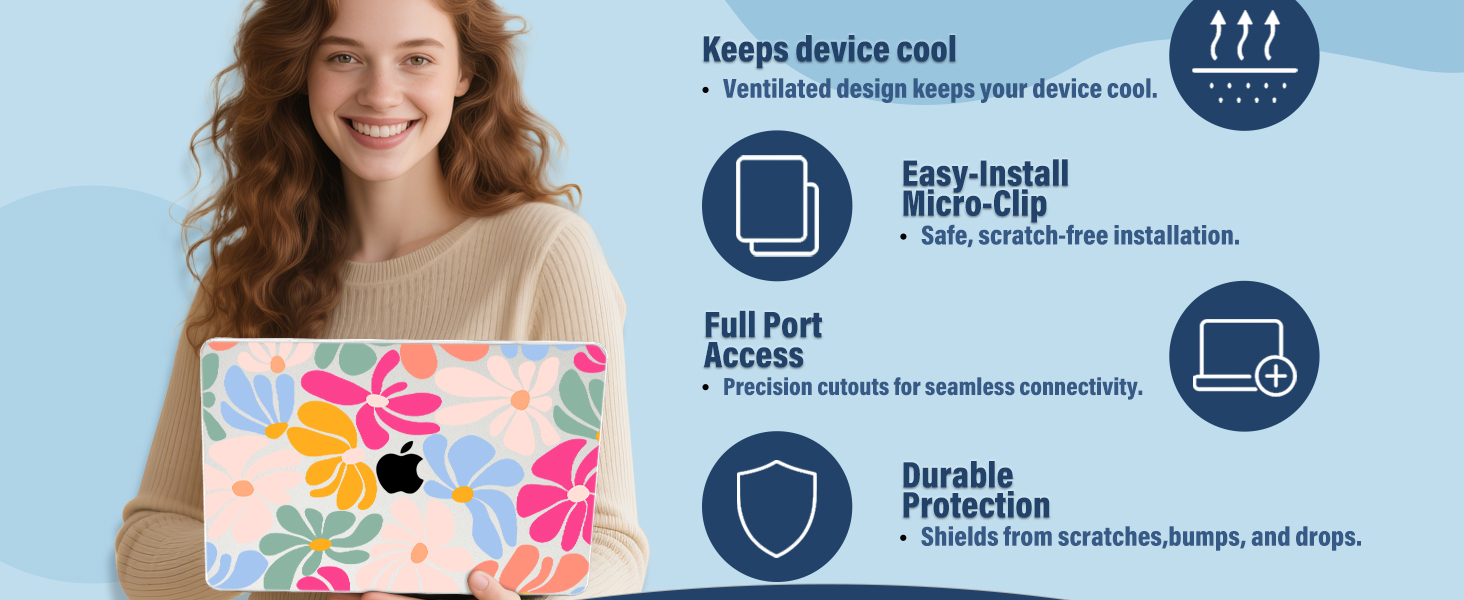 Effortless Installation & Removal: The snap-on design simplifies setup while safeguarding your MacBook Air 13.6 inch. Each component is easily removable for quick cleaning and maintenance
