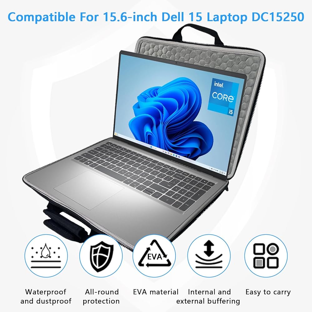 【Hard EVA Protective Laptop】 EVA hard sleeve and features internal upgraded shock resistant padding layer, protect your 15.6inch Dell laptop from inadvertent collision and accidental scratches when put in backpack or suitcase.