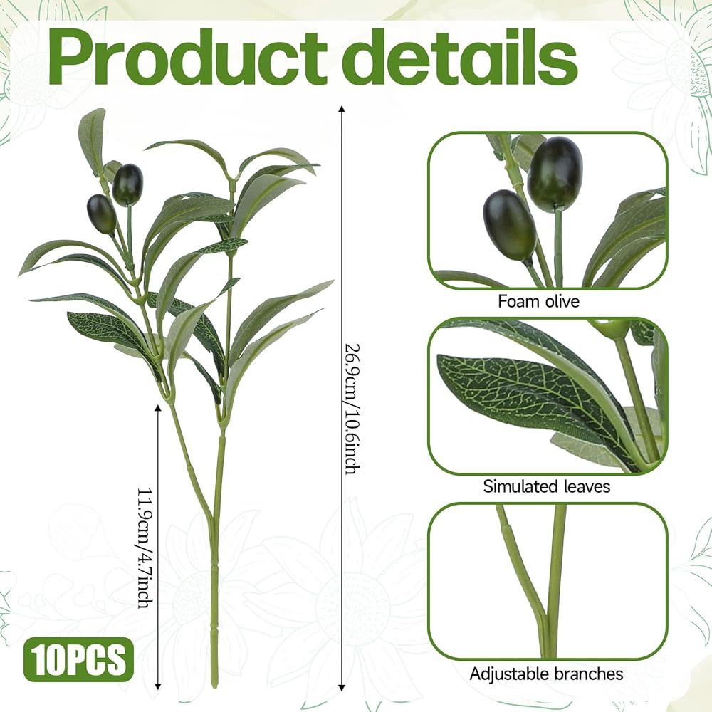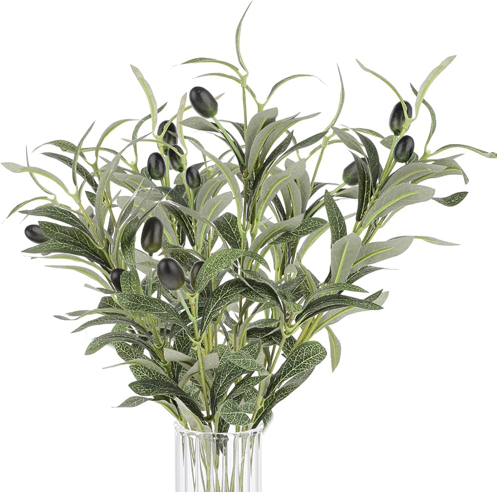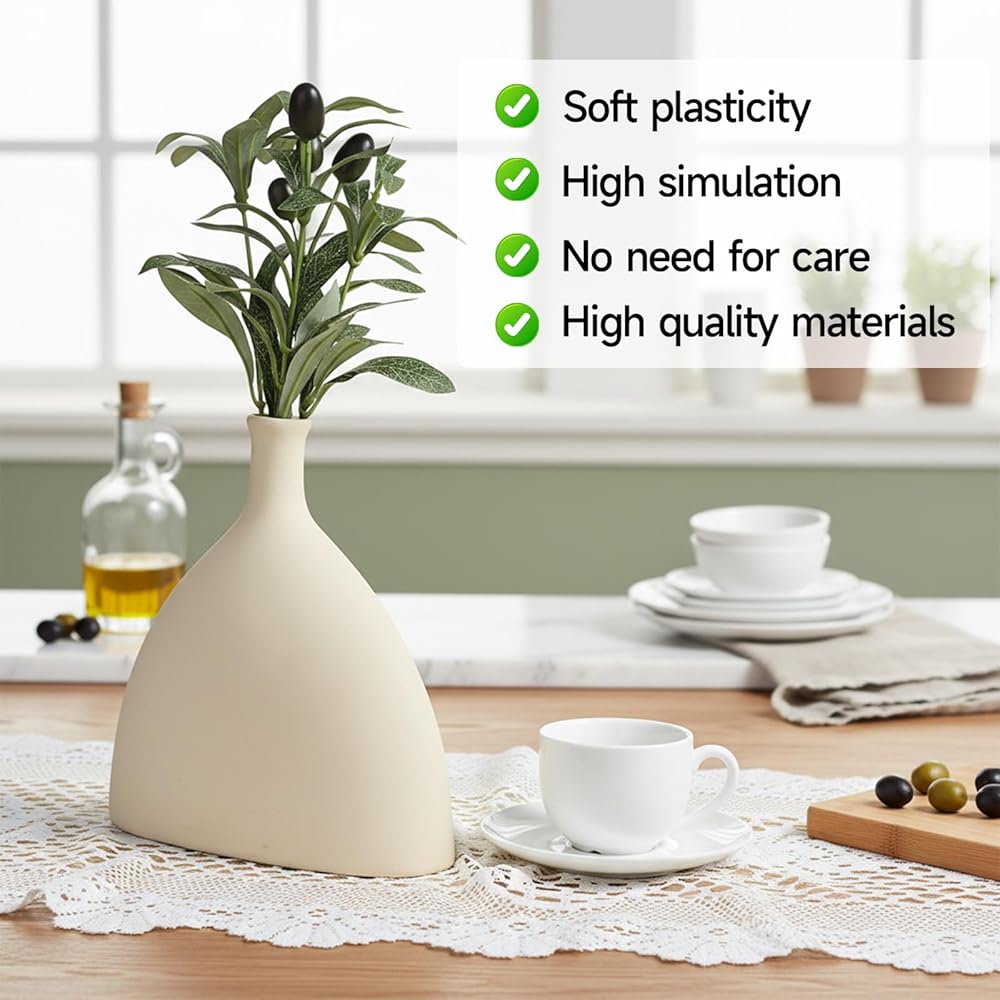 PRODUCT SIZE:Faux olive branches compact and lifelike design, 10.23 inches tall, faux branches for vase with silk leaves and foam fruits, is nice for decorating small spaces or creating a natural atmosphere