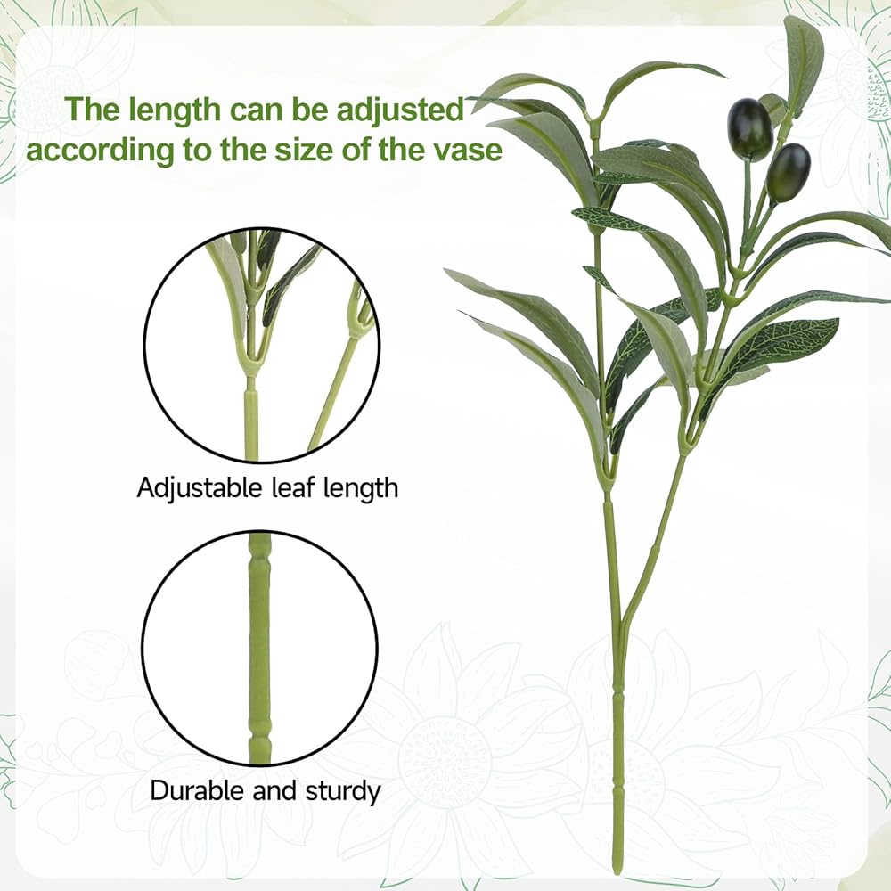 MATERIAL:Artificial olive tree branches is made of flexible wire and iron rods wrapped in plastic, which can be shaped and adjusted to suit other decor or themes