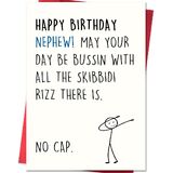 بطاقة عيد ميلاد ابن أخ، بطاقة عيد ميلاد لابن أخ من العم العم، بطاقات هدايا عيد ميلاد ابن أخ سعيد مع تصميم مستوحى من Skibidi Rizz Slang Meme in Kuwait