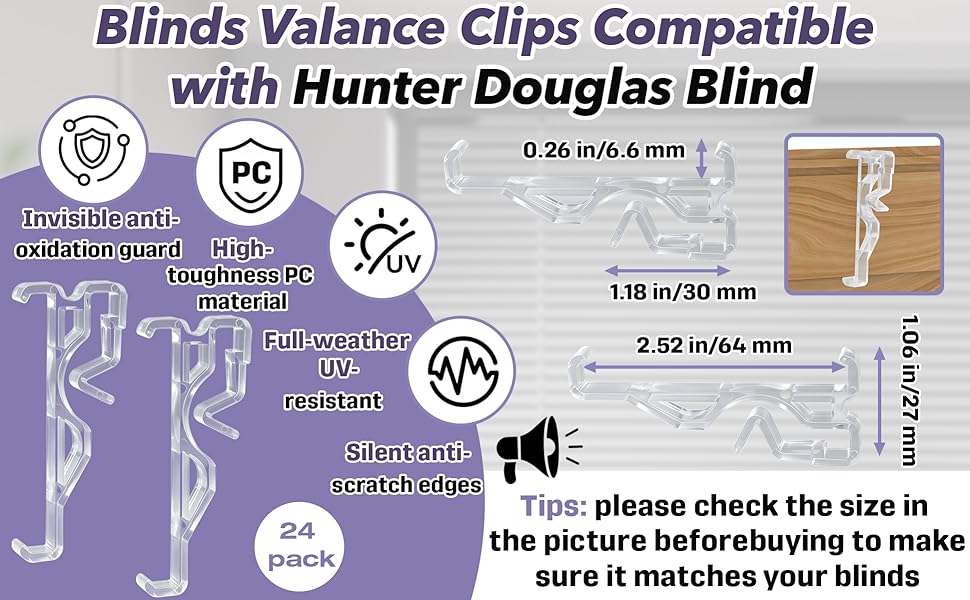 24-Pack Value Set:The package comes with 24 valance clips, providing ample replacements for multiple windows in your home or spares for future use, so you'll never be caught short when you need to fix or update your blinds
