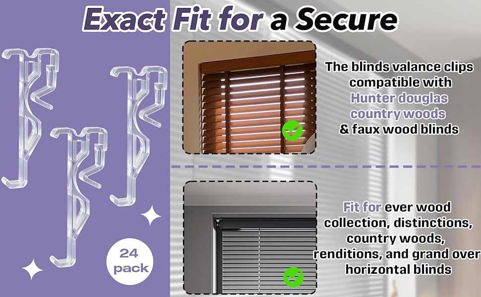 Wide Compatibility:These clear valance clips are designed to fit Country Woods, Faux Wood blinds, as well as Ever Wood collection, Distinctions, Renditions series, and Grandover Horizontal blinds, serving as a practical replacement option for your window treatment accessories