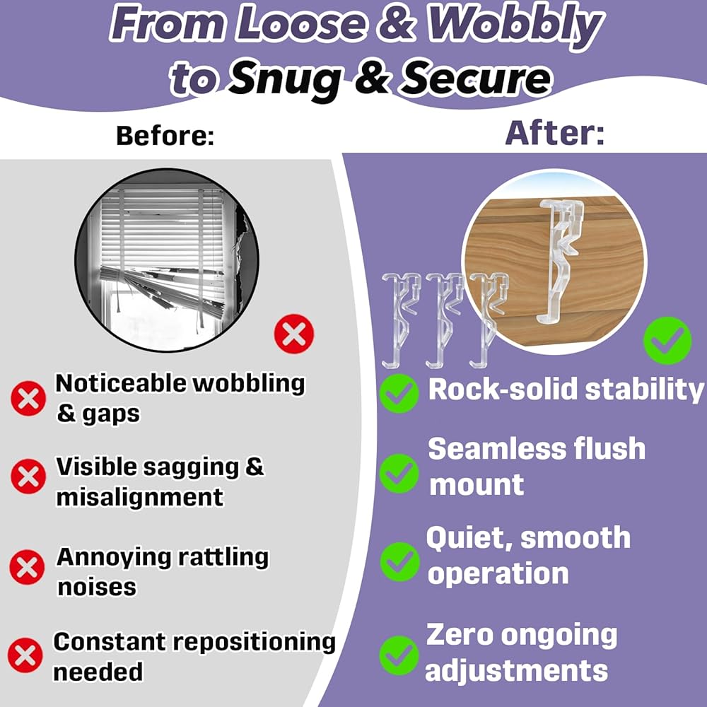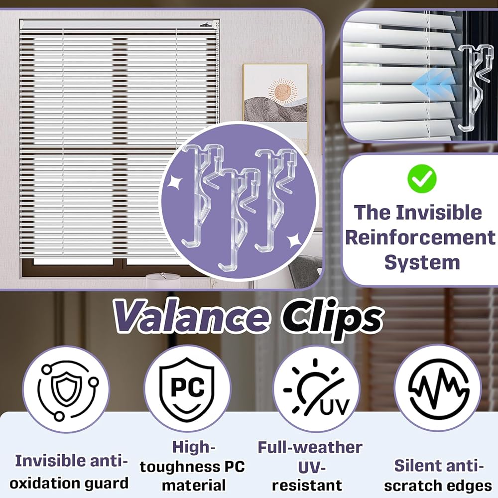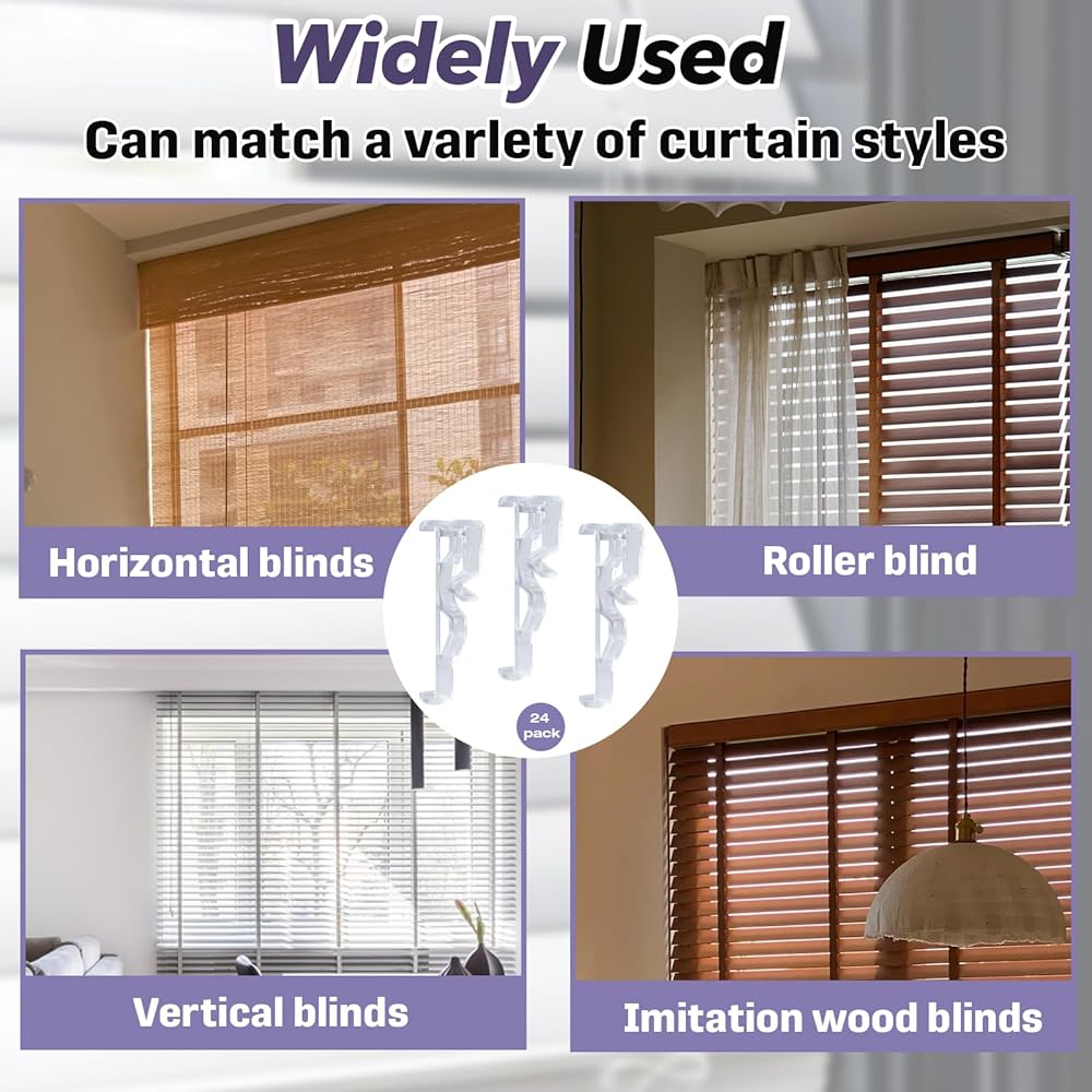 Discreet Clear Design:Crafted from durable transparent plastic, the clips blend seamlessly with your window blinds and valances, maintaining a neat, unobtrusive look that won't distract from your home decor
