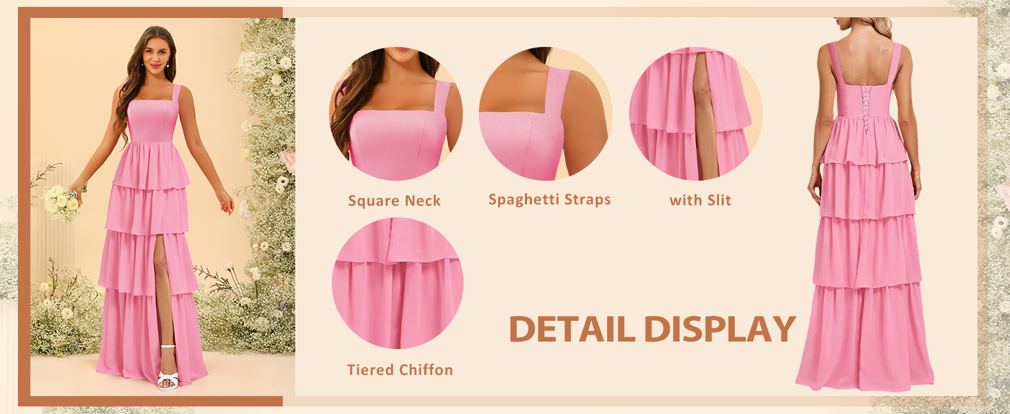 Features:Flowy Square Neck Bridesmaid Dresses,Elegant Long New Trendy Fashion Chiffon Maxi Prom Dresses for Women,Sexy Sleeveless Dresses for Wedding Guest.