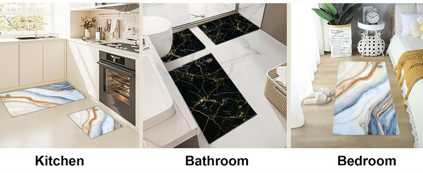 【Fast Absorbing & Quick Drying】The super absorbent grey gold marble bathroom mat can quickly suck up dripping water when you come out from bathtub or shower.Color will not fade.This bath rug absorbs moisture quickly while drying quickly,which preserves the bathroom floor and doesn't cause any odor.