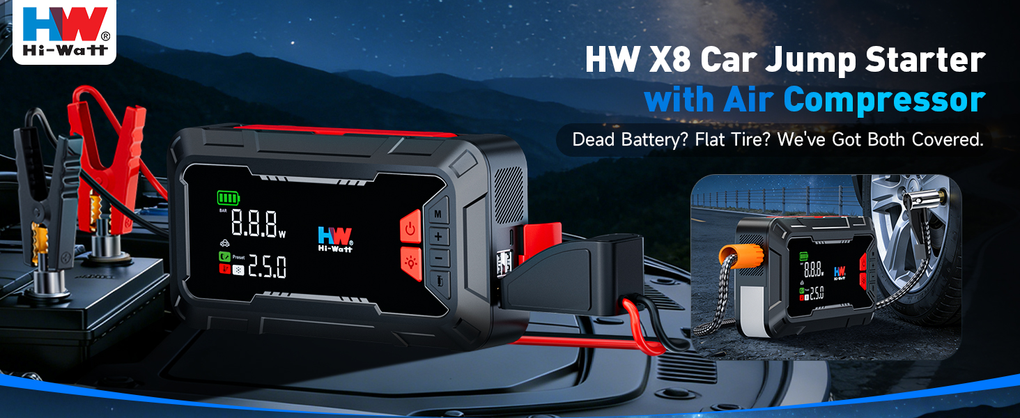 What You Get: X8 Main Unit, Smart Jump Clamps, Air Hose, USB-C to C Cable, USB-A to C Cable, 4 Multi-function Nozzles, User Manual, Storage Bag and 12-Month Warranty.