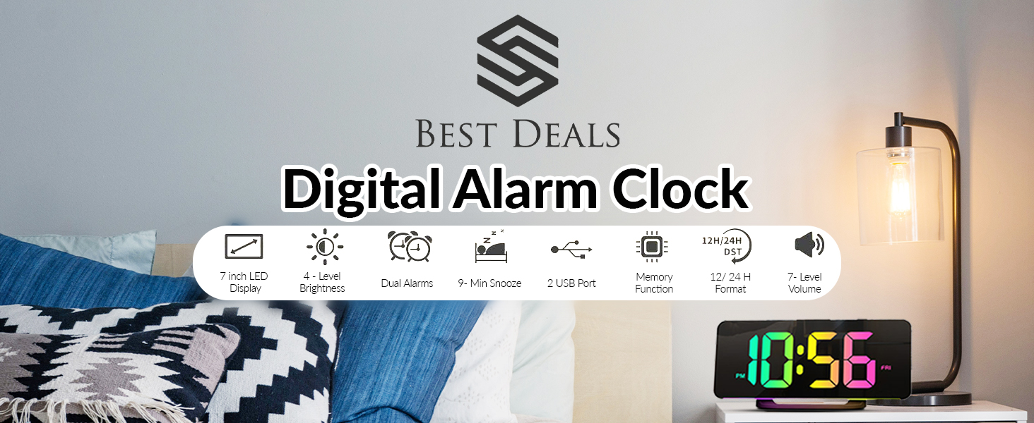 Large 7" LED Screen – Designed as One of the Most Convenient Clocks for the Bedroom, It Offers Clear Visibility with Oversized Digits, Making This Small Digital Alarm Clock Easy to Read for Kids, Seniors, and Anyone Who Prefers Clear, Wide-Angle Viewing.