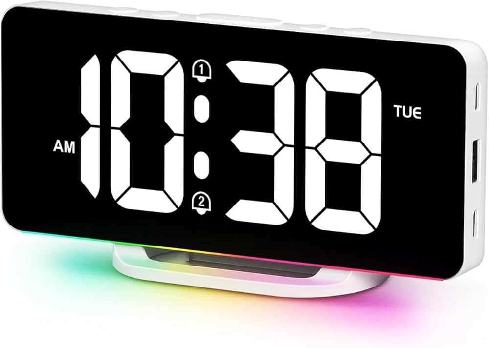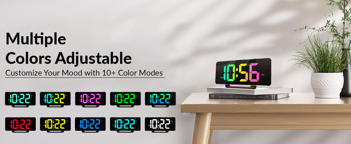 Desk Clock with Dimmer – This Modern Desk Clock Includes Adjustable Brightness Levels and 11 Color Options, Allowing You to Personalize Your Space While Maintaining Comfortable Visibility Day or Night.
