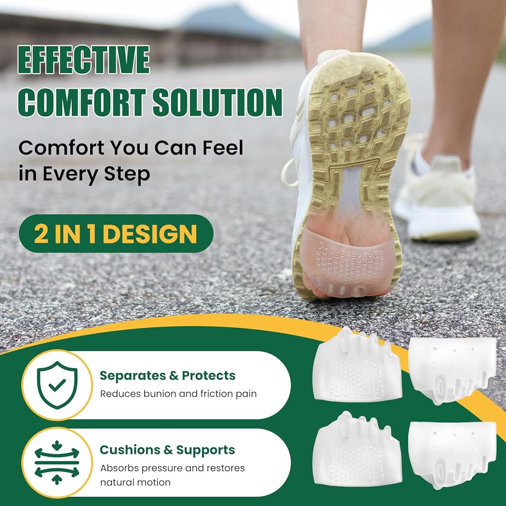 【2 Pairs for Daily Care】: Includes 4pcs of versatile metatarsal pads and toe separators (clear) . Perfect for runners, travelers, or busy parents—lightweight, portable, and always ready to give your feet the care they deserve, while saving you the cost of frequent shoe replacements.