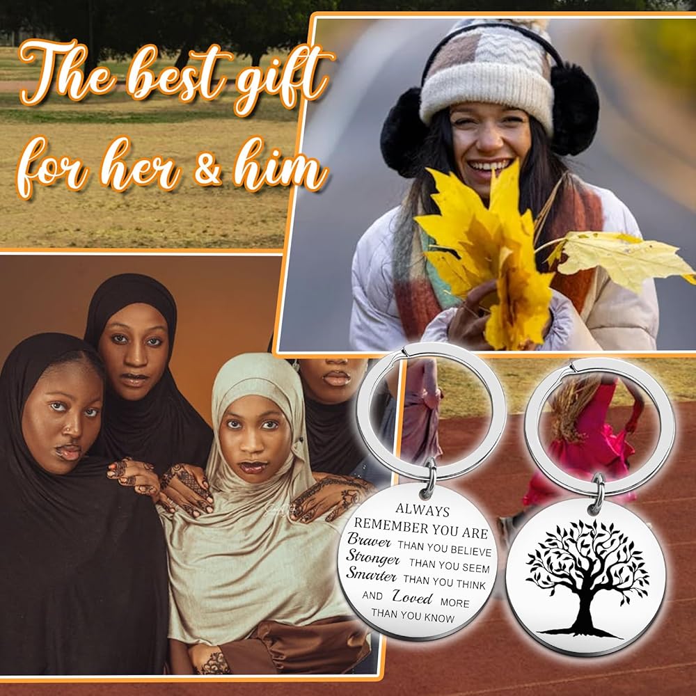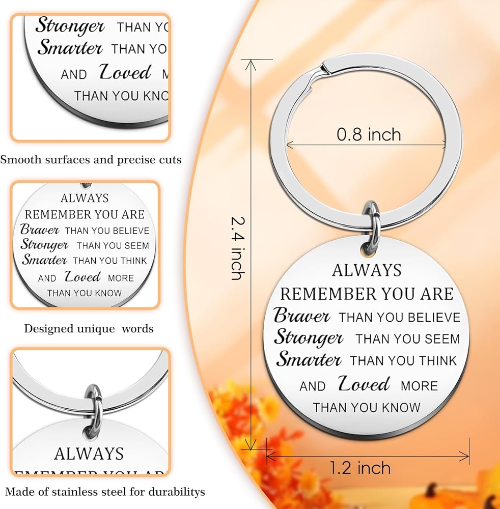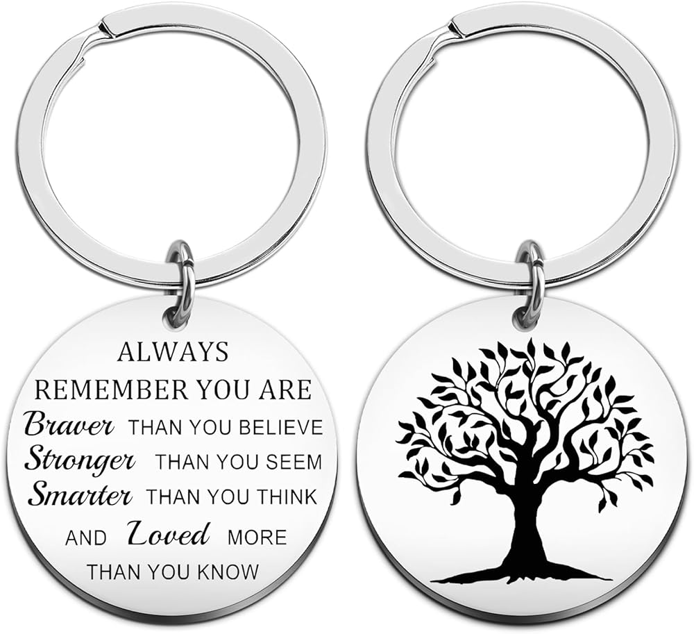 tree of life gifts for women & tree of life keychain :This inspirational keychain features powerful affirmations on front "Always Remember You Are Braver Than You Believe, Stronger Than You Seem, Smarter Than You Think, And Loved More Than You Know" with beautiful Tree of Life reverse design. The meaningful dual-sided inspiration makes it perfect encouragement gifts for women needing daily motivation.