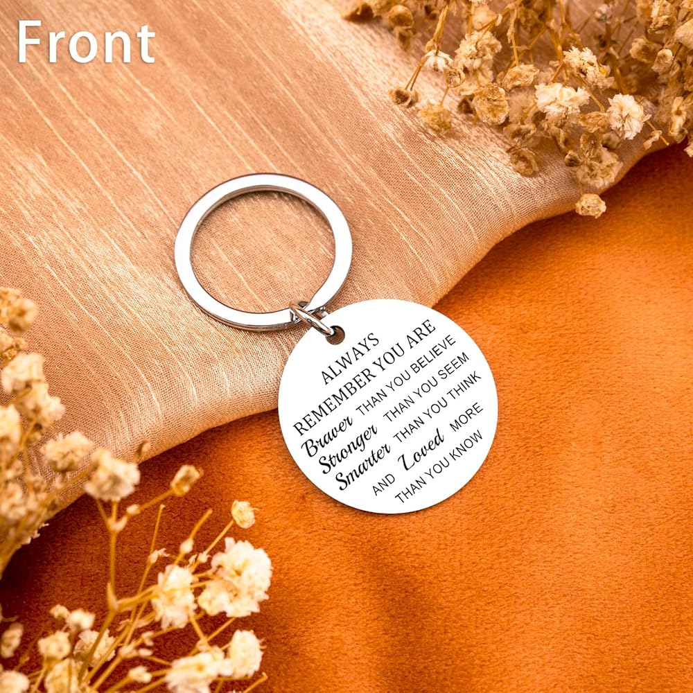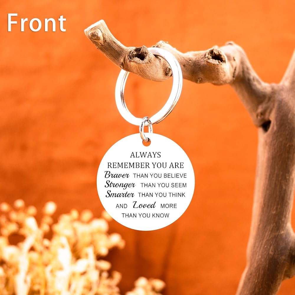 Spread hope and strength with this deeply inspirational gifts for women! Featuring powerful affirmations on one side and a beautiful Tree of Life design on the reverse, this keychain offers daily encouragement when it's needed most. The meaningful message "Always Remember You Are Braver Than You Believe, Stronger Than You Seem, Smarter Than You Think, And Loved More Than You Know" The substantial 3.3x3.3cm size ensures easy reading while maintaining portability. Whether for someone fighting illness, going through difficult times, or just needing encouragement, it's a gift that truly cares.Key Features:✔ Powerful inspirational affirmations✔ Beautiful Tree of Life reverse design✔ Generous 3.3x3.3cm readable size✔ Comes in comforting gift packaging✔ Perfect for encouragement and supportOffer the gift of strength and hope with this meaningful inspirational keychain!