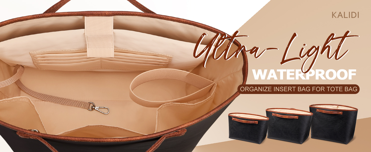 CHIC & VERSATILE STYLE: The insert bag has an elegant faux leather-textured pure black body, accented with brown faux leather at the opening and handles for a casual, classic look. Beyond a bag organizer, it doubles as a stylish makeup pouch, handy car caddy, or chic home storage solution for on-the-go organization.