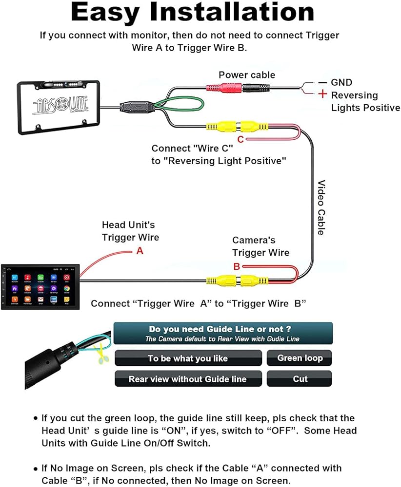 Super Long RCA (AV) Cable: We supply 32.8 ft (10M) RCA Cable, you do not need to buy an extra cable for cars, vans, and trucks (12V). Save Money. The wired Camera is more reliable, more stable. The product is upgrading, for the install way, pls check the user manual