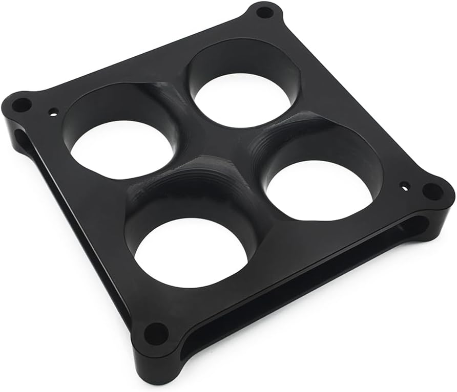 The carburetor spacers can isolate carburetor from manifold, preventing horsepower-robbing heat transfer while also increasing air flow due to the increase in distance from the bottom of the carburetor to the manifold plenum, allow the air and fuel mixture to turn more easily into the runners.