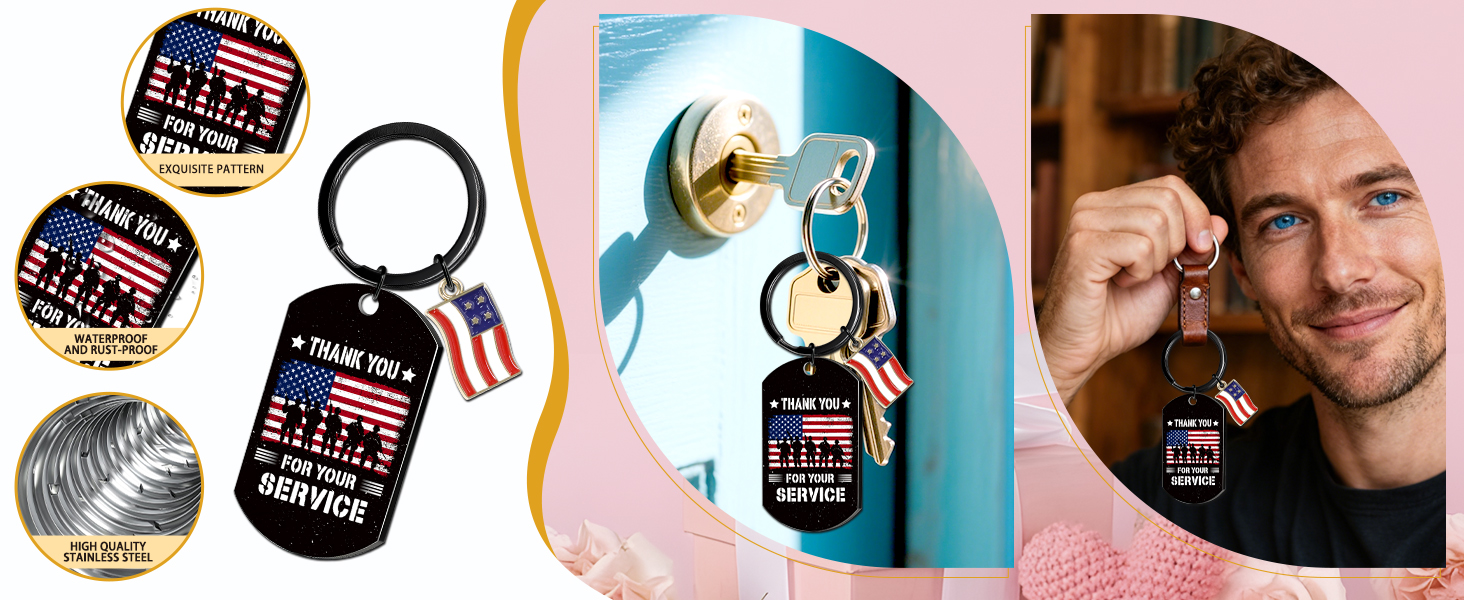 Gift-Ready Packaging: Each keychain comes in a secure and elegant gift box, making it easy to present as a Veterans Day gift,retirement gifts, or thank you appreciation gifts. It is gift ready package, no additional wrapping needed