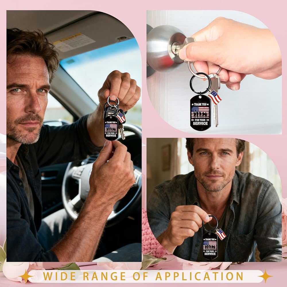 Veteran Day Gifts: This black american flag dog tag keychain designs with thank you for your service appreciation text and USA flag charm, it is a meaningful gift designed for veterans. This metal keychain is ideal as not only Veterans Day appreciation gift, Veterans Day party favors decorations