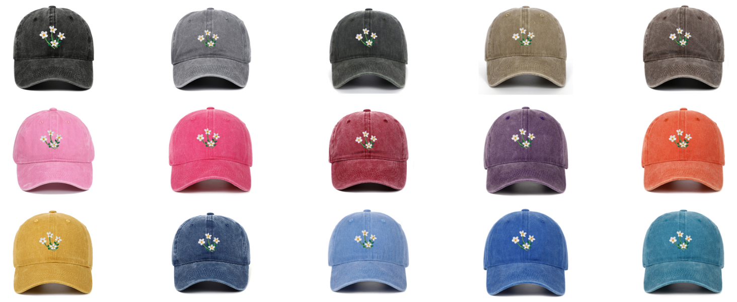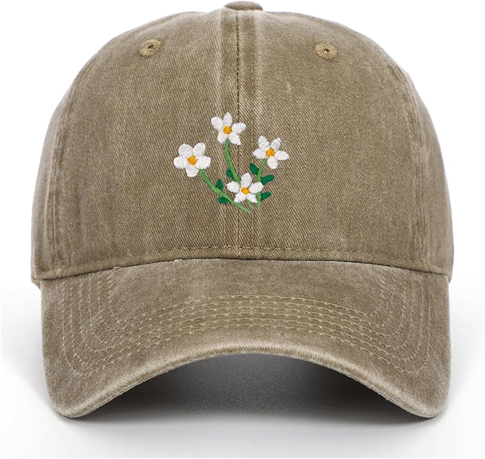 Material: This cute flower baseball cap is made of premium washed cotton, which is soft and skin-friendly. It has a 6-panel structure, ventilation holes on the top, and a sweat band inside to keep you comfortable and dry all day long, suitable for all seasons.