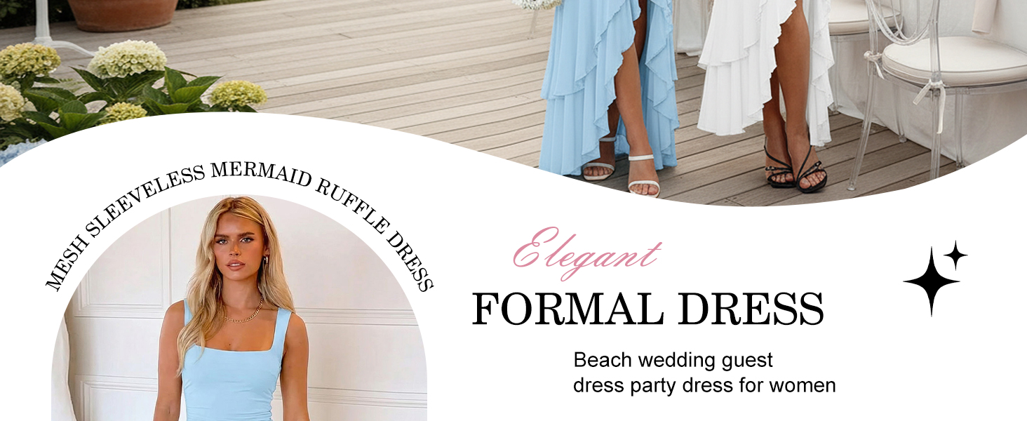 Design: The cocktail dresses feature tiered ruffles hem design, sleeveless tank dress, square neck, high slit, maxi length, ruched body con dress. The party dress is perfect for women
