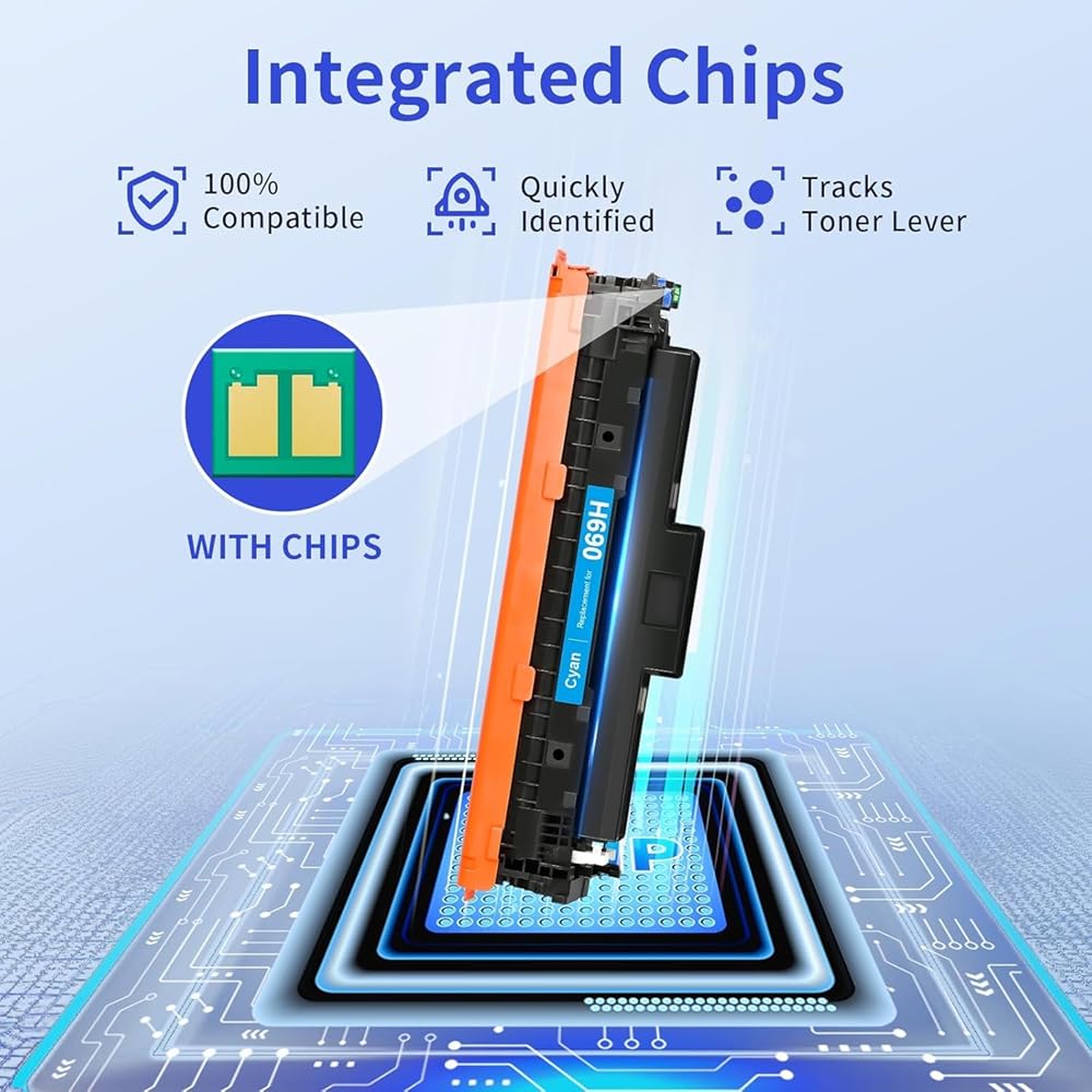 High Page Yield: Up to 7,600 pages per 069H black toner cartridge, Up to 5,500 Pages per 069H cyan magenta yellow toner cartridge at 5% coverage of A4 Paper