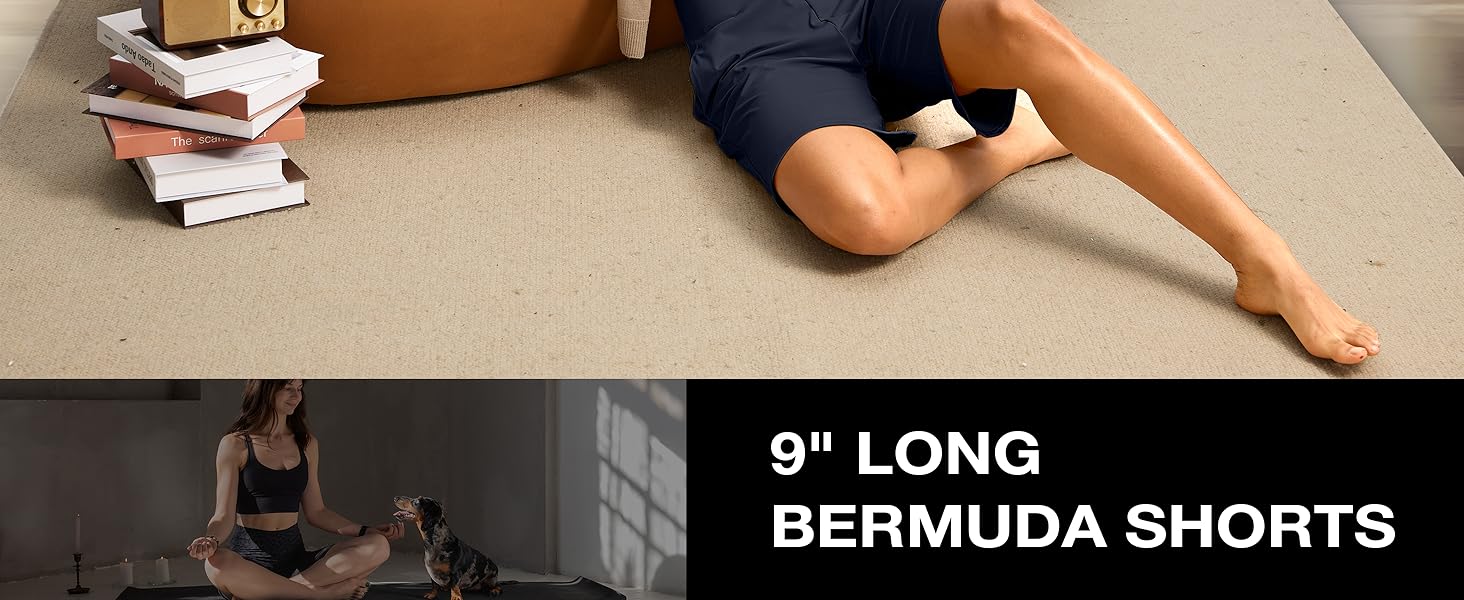 KNEE LENGTH: 9" inseam shorts features knee length for plenty of coverage, perfect length can prevents thighs from rubbing, won't ride up while moving.
