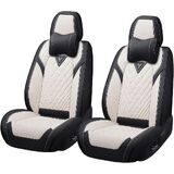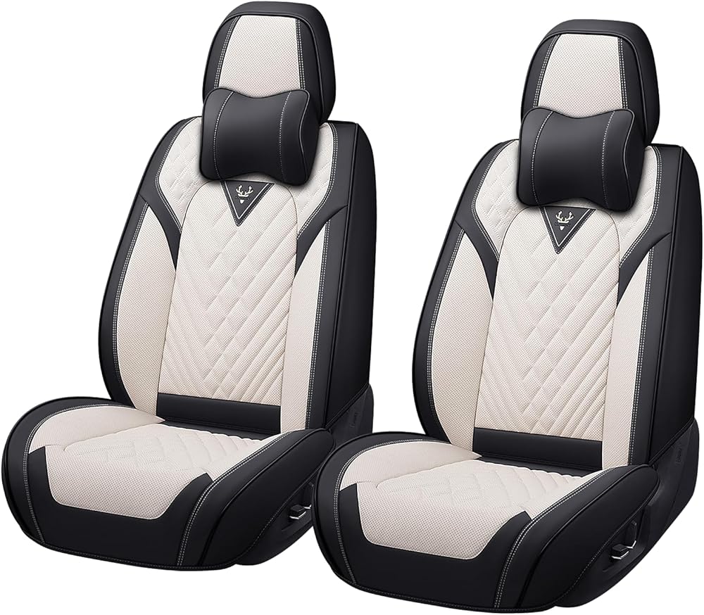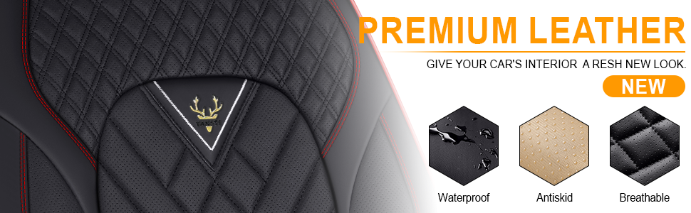 【HIGH QUALITY LEATHER】: The car seat covers are fabricated from nappa leather and multi-layer fabrics. The leather material is comfortable, elastic, aesthetically pleasing and imposing, thereby rejuvenating the interior of your car.