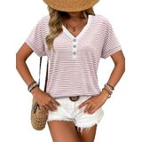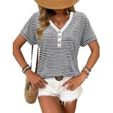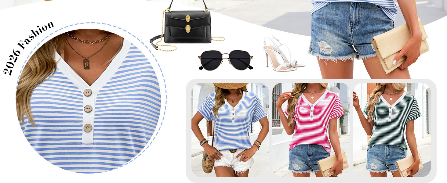 Note: This womens t-shirt is packed in a vacuum sealed bag, and wrinkles may appear after opening. Simply wash and iron to remove wrinkles. Womens short sleeve striped t shirts v neck button down tops